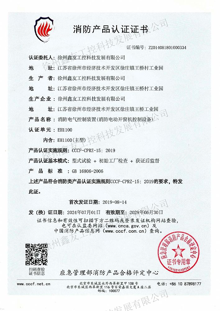 消防產(chǎn)品認(rèn)證證書EH1000...