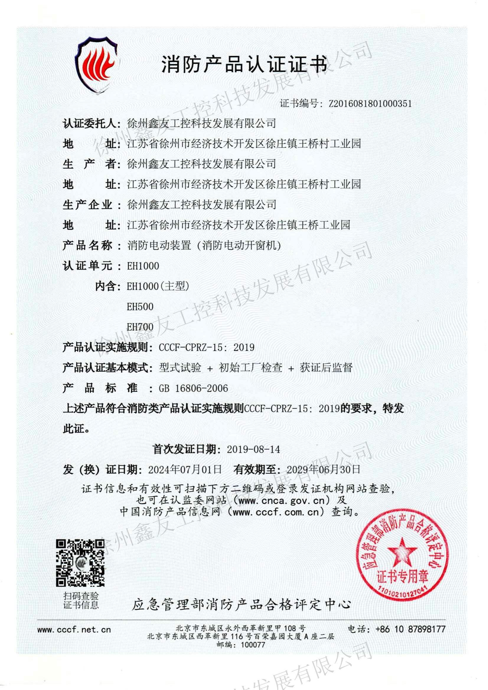 消防產(chǎn)品認(rèn)證證書EH300