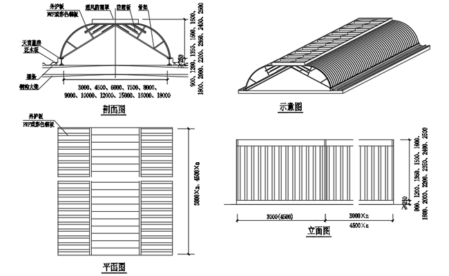2. 主骨架和屋脊通風(fēng)天窗基座采用焊接或者螺栓連接,與屋面形成一個(gè)整體,具有較好的結(jié)構(gòu)安全性能。